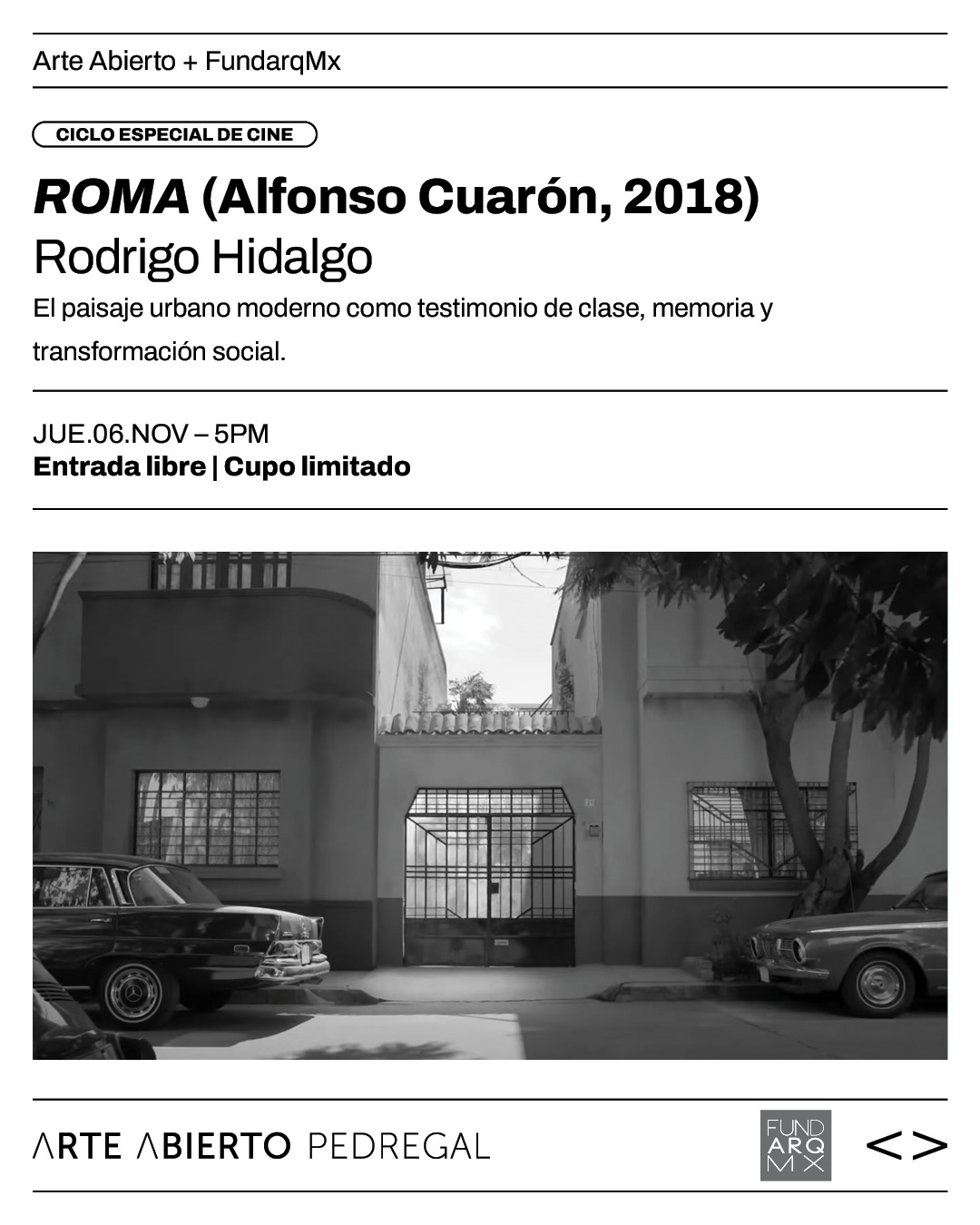 Arte Abierto, en colaboración con FundarqMx, presenta una nueva edición de Arquicinema, un espacio de encuentro entre el cine y la arquitectura que, en esta ocasión, lleva por título “La Ciudad de México a través del cine”.